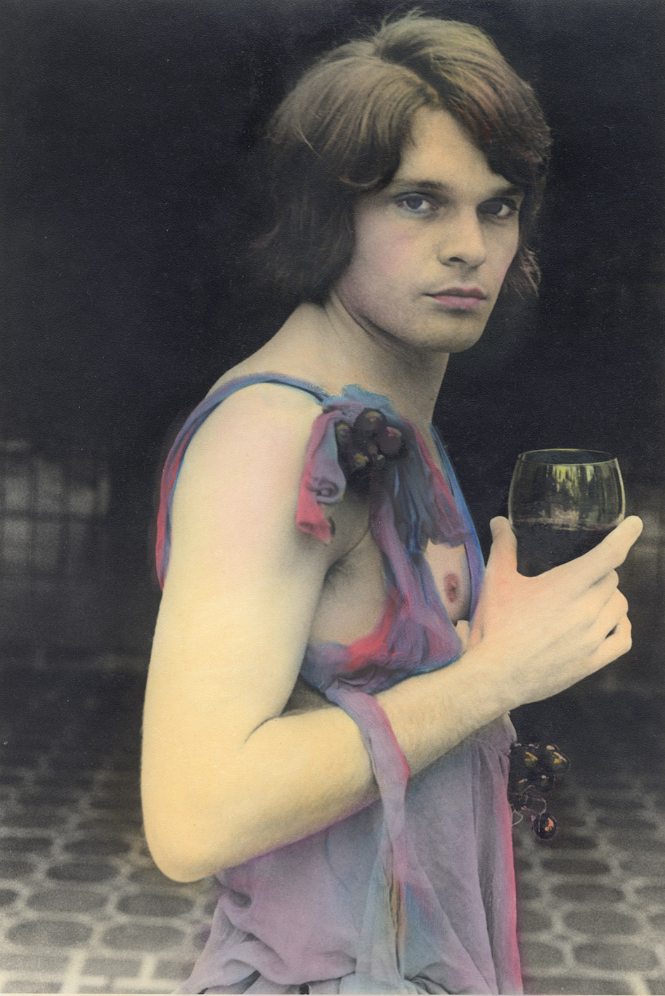 Un homme aux traits frappants est entré dans le studio de sculpture du San Francisco Art Institute ou j’étais étudiante. Sa veste de velours noir se détachait des plâtres, tout comme son élégance singulière, dans le San Francisco des années 70. Il se nommait Gérard Dupont, avait été étudiant de Michel Foucault à Paris, et nous sommes devenus amis. Il avait envie de poser comme une sculpture et c’est comme ça, qu’en Californie, j’ai commencé une série d’œuvres photographiques sur les hommes et femmes en poses « mythologiques », rappelant des sculptures. Gérard dans une niche, Jean-Pierre comme Bacchus. Sur un tirage noir et blanc d’une statue d’Hari Krishna, j’avais commencé à appliquer la couleur.
